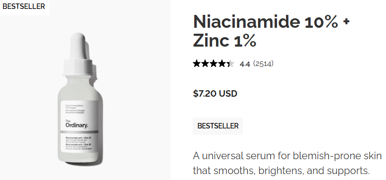 - The Ordinary Niacinamide 10% + Zinc 1%